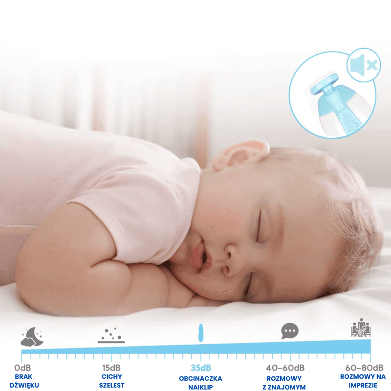 Urządzenie pracuje bardzo cicho, dzięki czemu możesz bez obaw pielęgnować paznokcie nawet wtedy, gdy dziecko śpi.